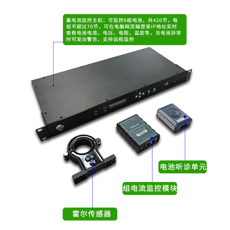 實(shí)時(shí)監(jiān)測(cè)蓄電池的電壓、充放電電流、電池狀態(tài)、內(nèi)阻、溫度先進(jìn)的測(cè)量算法,無(wú)需進(jìn)行大電流放電,實(shí)現(xiàn)無(wú)損測(cè)量分體式組電壓、組電流測(cè)量模塊,可根據(jù)現(xiàn)場(chǎng)情況靈活配置單體休眠功能,實(shí)現(xiàn)低能耗先進(jìn)一鍵單體地址搜索功能快速定位機(jī)房?jī)?nèi)告警或故障的蓄電池均衡功能,蓄電池在浮充時(shí)保持電壓均衡,使電池保持最佳活性狀;多樣的告警聯(lián)動(dòng),使突發(fā)事件無(wú)所遁形靈活配置,適用于1-6組電池的監(jiān)控,最多支持420節(jié)電池的監(jiān)控支持環(huán)形通